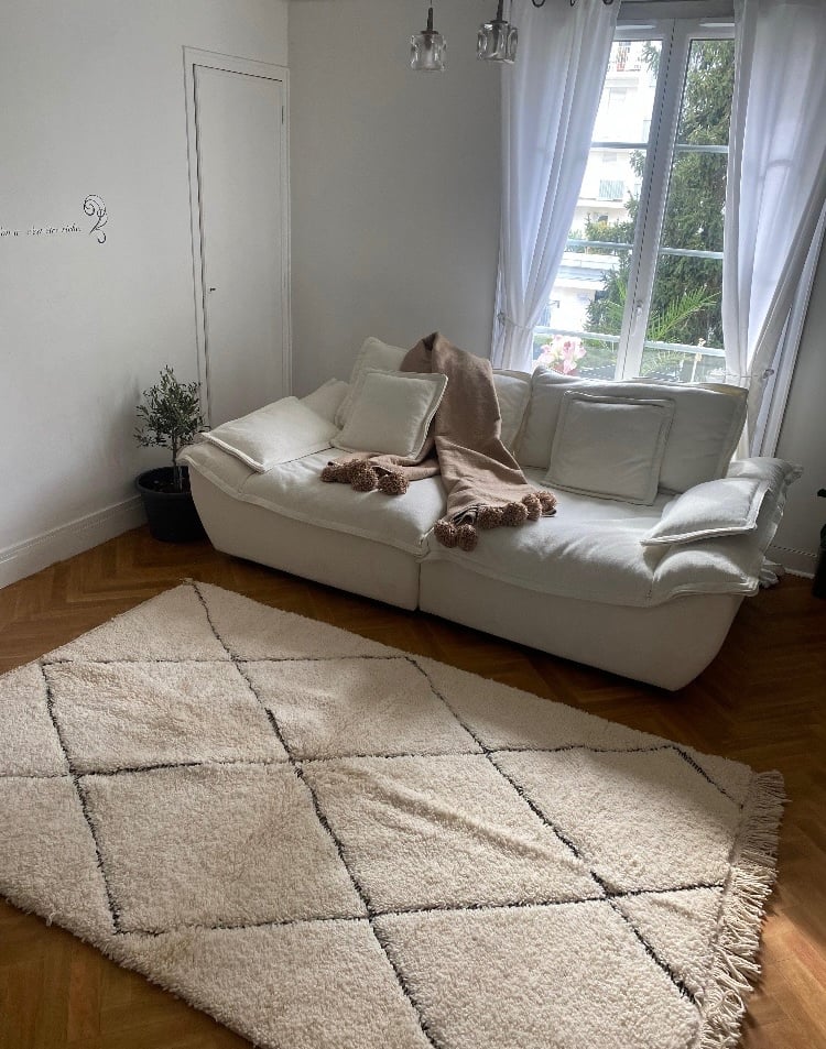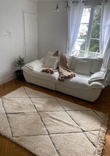 « Trop trop contente ! Le tapis est magnifique, on voit direct que c’est de la vraie qualité artisanale. Ça change toute l’ambiance de ma pièce, c’est chaleureux et unique. Merci Lili'z Concept pour la rapidité et le petit mot sympa dans le colis ! »